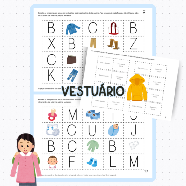 O material reúne, em um único KIT, atividades com animais, alimentos, vestuário e objetos, ampliando o repertório da criança e fortalecendo a consolidação do princípio alfabético de forma progressiva, concreta e significativa.