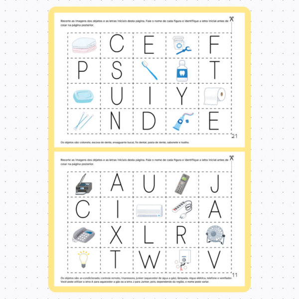 Uma proposta pedagógica estruturada para desenvolver a identificação do som inicial do nome de cada objeto e sua correspondência com a letra que representa esse som. A atividade favorece a percepção auditiva, amplia o vocabulário e fortalece a relação entre som e letra, contribuindo para a consolidação do princípio alfabético e para o processo inicial de alfabetização.